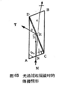 上面已經談到,偏光顯微鏡中主要部分為兩個尼科爾棱鏡(起偏鏡與檢偏鏡),他們都是用無色透明的方解石(冰洲石)所制成的,其形狀是具有菱形橫截面的長柱,如圖65所示。