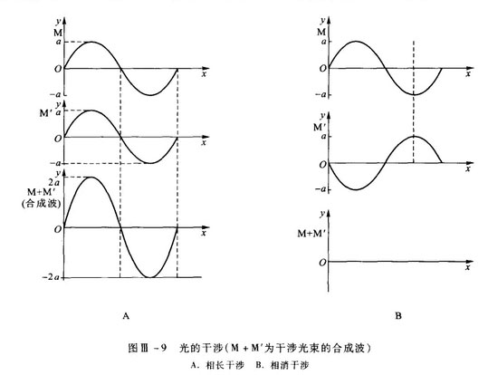在明視野下看起來透明的樣品如活細菌細胞,其不同部分的密度和折射率實際上是有差異的。光線通過這些樣品時,光波的相位因此發生變化.但這種相位變化不表現為明暗和顏色上的差異,不能為人眼所悠知。相差偏光顯微鏡到能通過其特殊裝置—環狀光闌和相板,將光的相位差轉變為人眼可以察覺的振幅差(明暗差)。如果產生的干涉為相長干涉,則振幅的同相膠相加而變大(圖Ⅲ-9A),該部分樣品的亮度加大;如果所產生的干涉為相消干涉(圖Ⅲ-9B),則振福的異相量相消而變小,這部分就變得較暗。這樣.變相位差為振幅差的結果,使原來透明的樣品會由于其內部不同組分間光干涉現象的差異表現為明顯的明暗差異,對比度增加,能更加清晰地觀察到在普通光學偏光顯微鏡中看不到或看不清的活細胞及細胞內的某些細微結構。