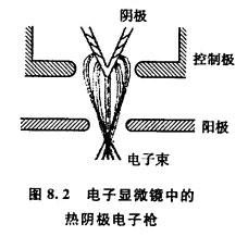 不論何種陰極發射源的電子槍,它們的陰極發射一定母電流的電子束,以保證在不同用途中器件有足夠的亮度.電子槍是由陰極、控制極和陽極組成陰極透鏡,電子束經陰極透鏡的會聚作用,進人各級電子透鏡。